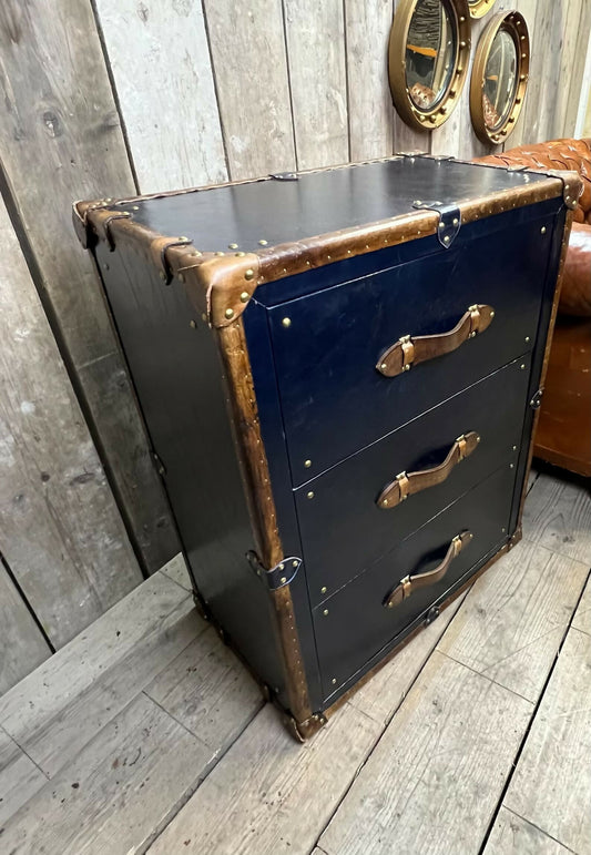 Luxury Dark Navy Blue Hand Dyed Leather Trimmed Set Of Draws