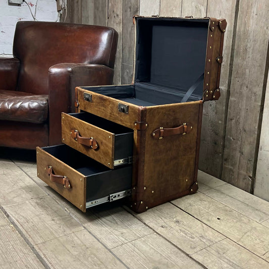 Leather Luxury Hand Dyed Top Grain Side Table Draw Compendium