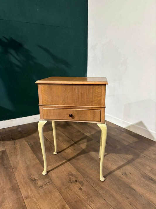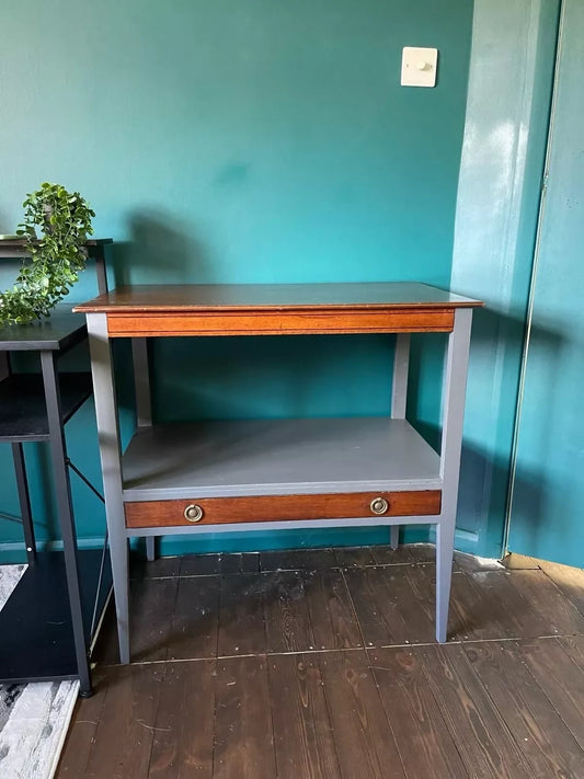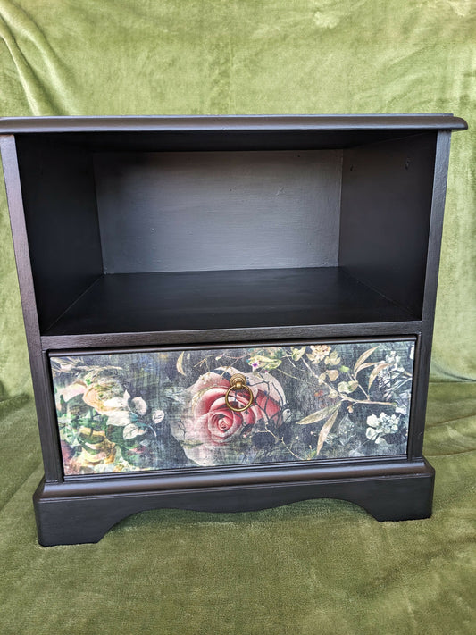 Beautiful vintage mahogany drawers/bedside table hand-painted duck egg with floral design