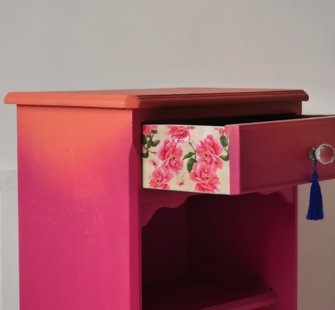 Pretty Side Table • Pink with floral decoupage - Ombré - Hand Painted Furniture - Cabinet - Side Table - Bedroom READ DESCRIPTION