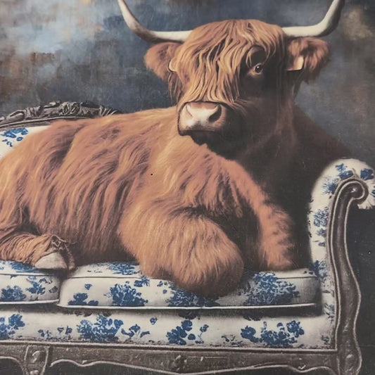 Solid Oak Console/TV Unit Hand-Painted Deep Blue with Highland Cow