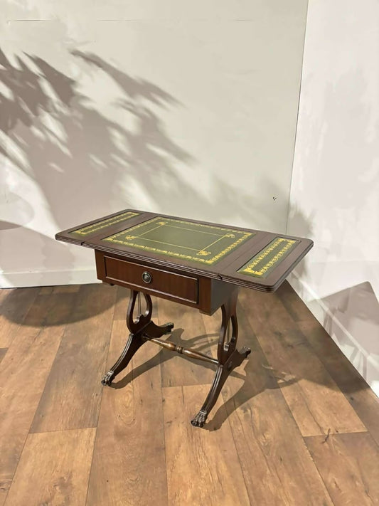 Vintage Mahogany Drop-Leaf Coffee Table with Tooled Leather Top
