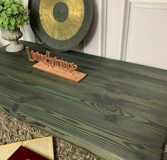 Sewing Machine Table TV Stand Yakisugi Charred Wood Table Turquoise