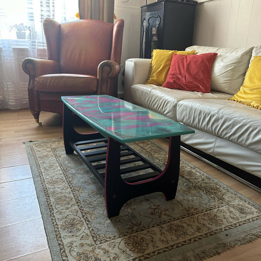 MCM Coffee Table Retro Coffee Table With Magazine Rack Resin Pour Table Love