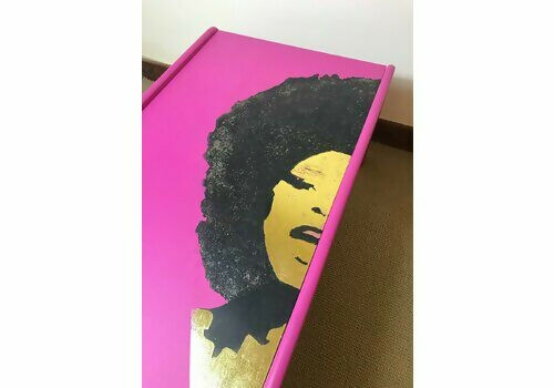 Betty Davis funk and soul singer tribute table - gold leaf and hot pink!