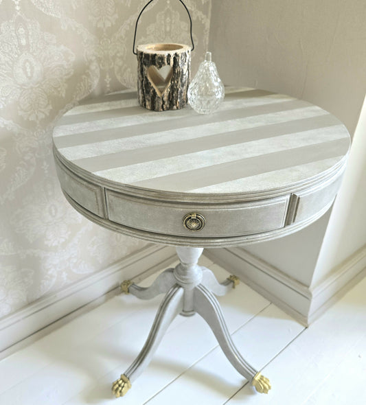 Bedside table painted in Layers of Annie Sloan Chalk paint with decoupaged drawer