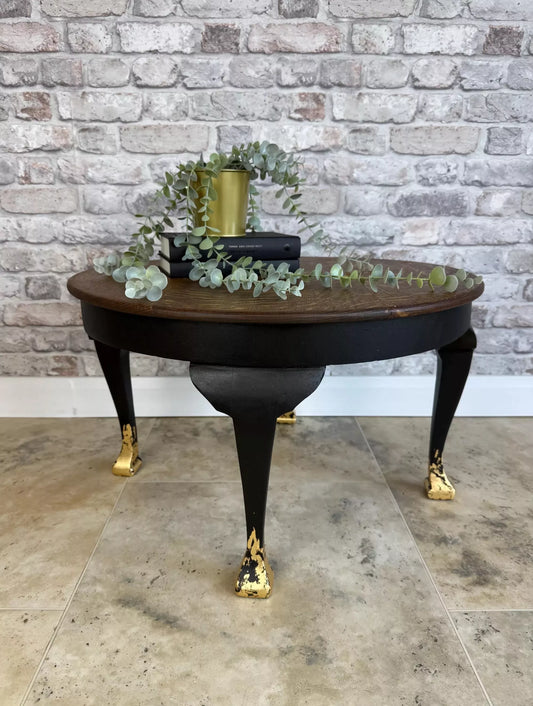 “Coal Black & Gold Luxe Side Table – Hand-Finished with Cappuccino-Toned Top”