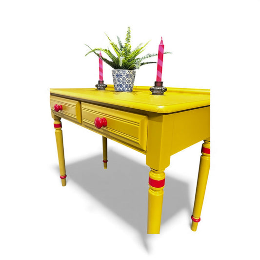 Vintage Yellow Console Table | Hand-Painted Dressing Table | Floral Lined Drawers | Hallway Desk Statement Furniture | Girl's Bedroom Desk