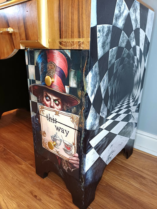 Upcycled Decoupaged Alice Dressing Table with Mirror
