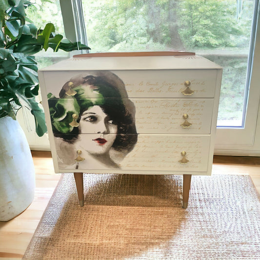 MCM Bedside Table; matching dressing table included in the price, decoupage, handpainted, bedroom furniture