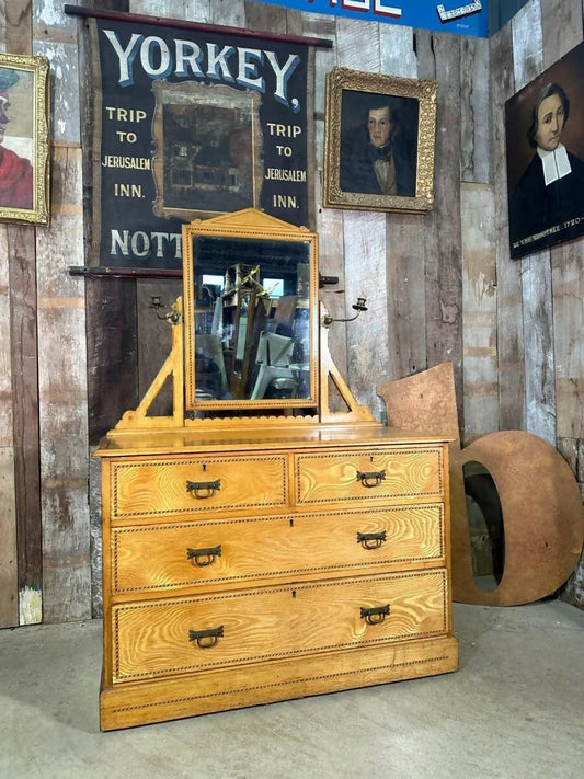 Antique Arts and Crafts Golden Ash Dressing Table Chest of Drawers, c 1890.