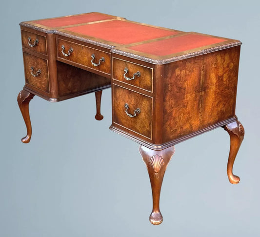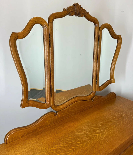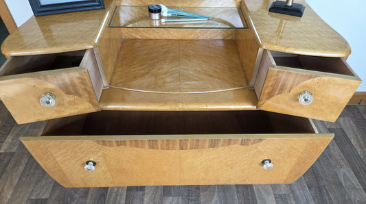 Art Deco dressing table, Restored 1940's Vanity table, Burr Walnut, Vintage Dressing Table with Mirror.