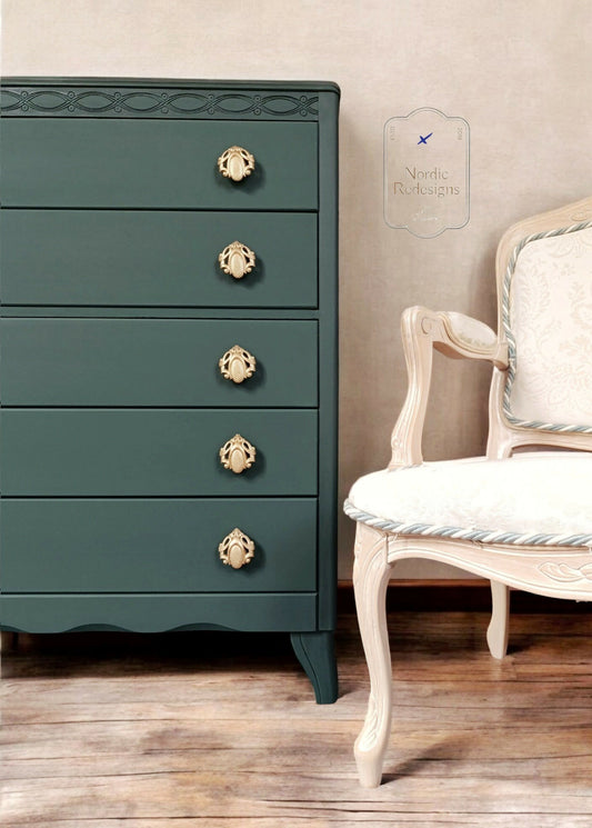 Hand-Painted Vintage Chest of Drawers | Soft Sage Green with Rose Floral Detailing