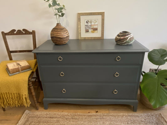 Refurbished vintage Stag Minstrel large captains chest, large Chest of drawers, green, dresser, sideboard, mid century