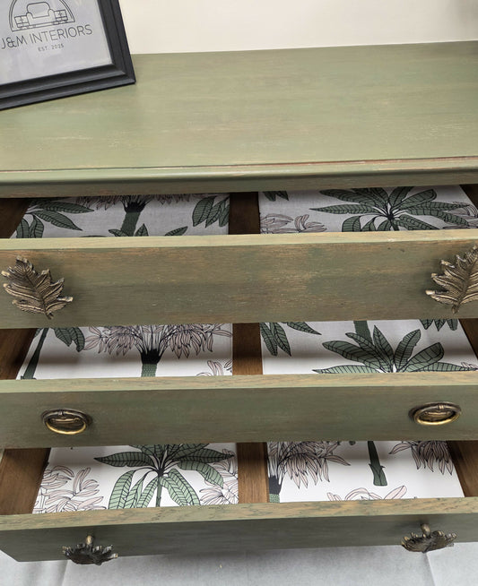 Vintage Three Drawer Olive Green washed Chest of Drawers
