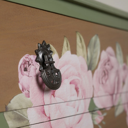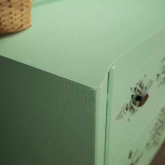 Hand-Painted Vintage Chest of Drawers | Soft Sage Green with Rose Floral Detailing