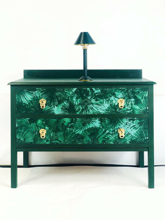 Faux Malachite Hand Painted Vintage Two Drawer Chest