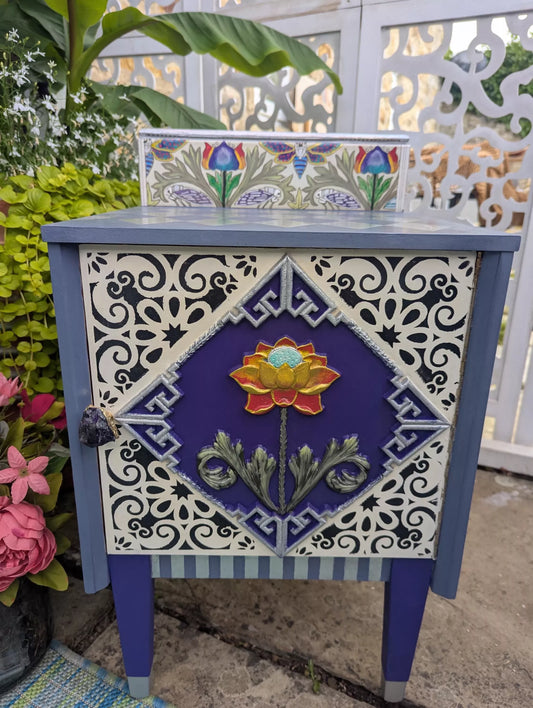 RARE Harris Lebus Vintage bedside cabinets fully restored and reimagined in an Art Nouveau style with a Bohemian twist- sold as a pair!