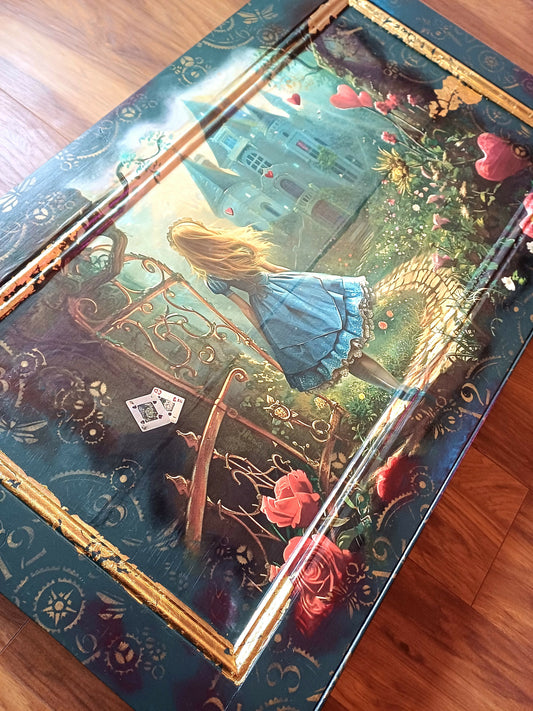 RESERVED Decoupaged Alice Wall Art Upcycled From An Old Cupboard Door