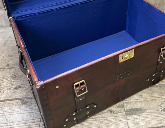 Genuine Bridle Leather Hand Dyed Belted Chestnut Brown Coffee Table Trunk