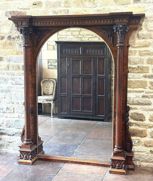 A Good Large Victorian Carved and Figured Walnut Overmantel Mirror