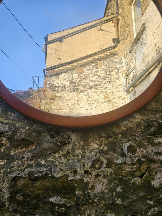Danish Designed Wall Mirror Circular Teak Vintage Retro Mid Century Vintage Furniture Bedroom Living Room Home Decor