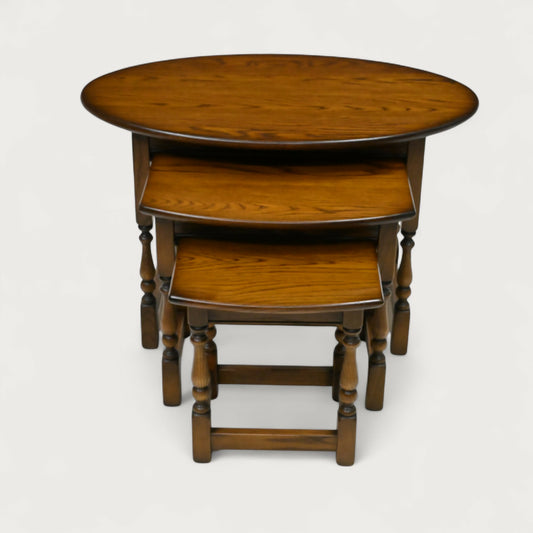 Old Charm Oval Nest of Tables in Light Oak Model 1990 VGC FREE UK Delivery*. SBR10568/1006E