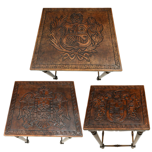 Vintage Nest Of Tables Leather Topped Embossed Crests FREE UK Delivery. SBR10595/1706E