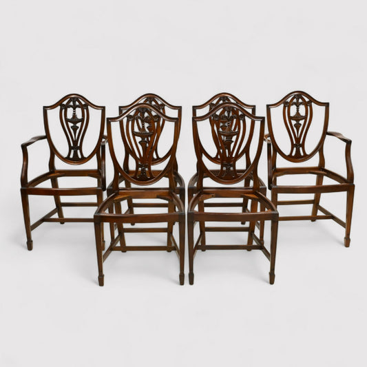 Set of 6 Mahogany Shield Dining Chairs 2 Carvers Drop On Seats FREE UK Delivery. SBR10851/2008E