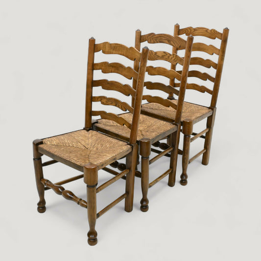 3 Georgian Oak Dining Chair Ladderback Rush Seats Pad Feet FREE UK Delivery*. SBR10944/1609E