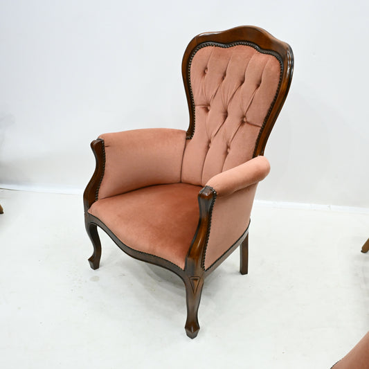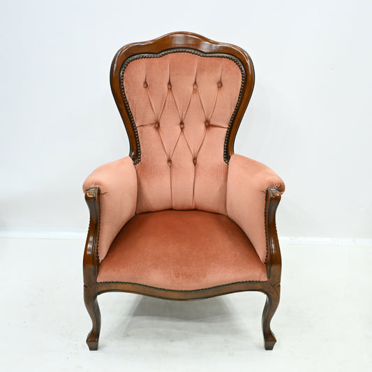 Vintage French Style Easy Chair Armchair Salmon Studded Upholstery FREE Delivery. SBR10234/2003E