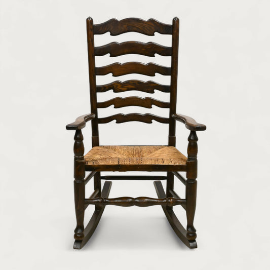 Vintage Rocking Chair Oak Frame Reed Seat Georgian Style FREE UK Delivery. SBR10842/1808E