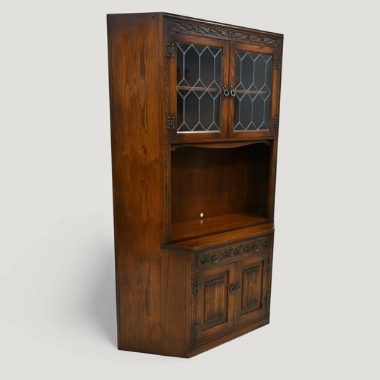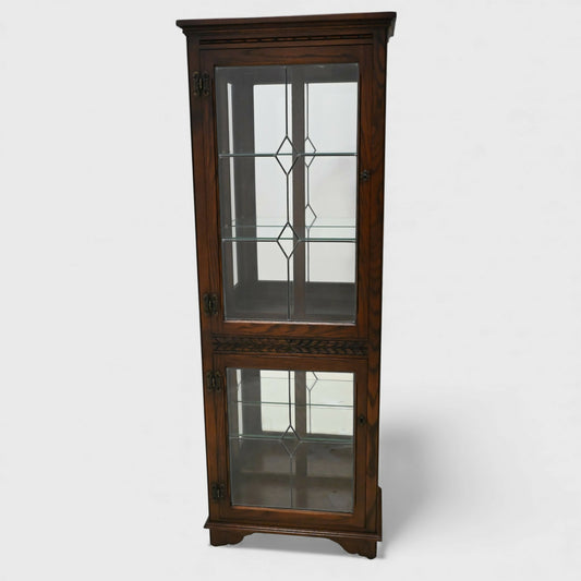 Old Charm Corner Display Cabinet with Leaded Glass Light Oak FREE UK Delivery*. SBR9512/0209D
