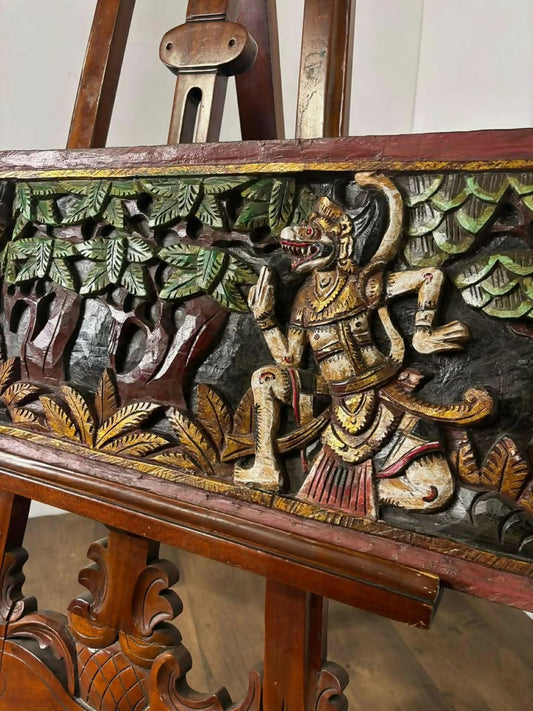 Large Hand Carved Wooden Panel Depicting Figures In A Forest