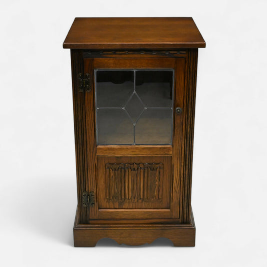 Old Charm Pedestal Cabinet Cupboard Linenfold Doors Tudor Brown FREE DELIVERY. SBR9087/0805D