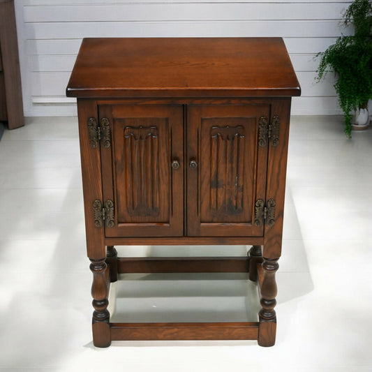 Old Charm Pedestal Cupboard Cabinet Linenfold Doors Tudor Brown FREE UK DELIVERY. SBR10924/0909E