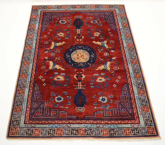 Antique Handmade Chinese Khotan Rug/Carpet Geometric Design FREE UK Delivery. SBR7123/2704B