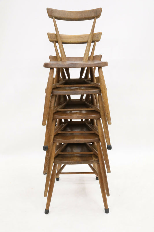5 Ercol Stacking Chairs For School/Playroom 1950s Waxed Finish FREE UK Delivery. SBR8088/0906C