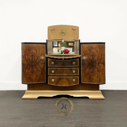Large Art Deco Black Gold Walnut Cocktail Cabinet