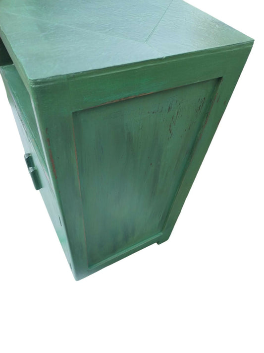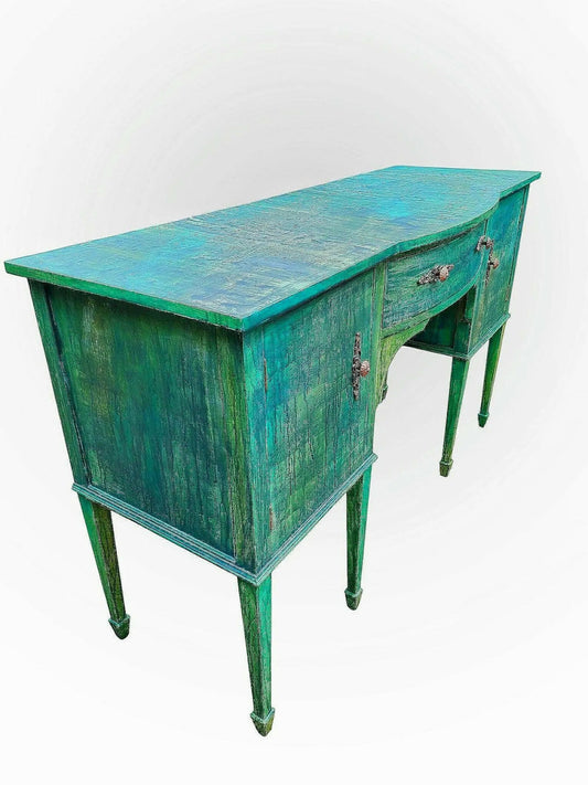 Vintage Oxidized Copper Style Sideboard | Emerald & Teal Patina Cabinet | Large Industrial Credenza | Solid Wood Workshop Desk | Heavy Duty Statemen