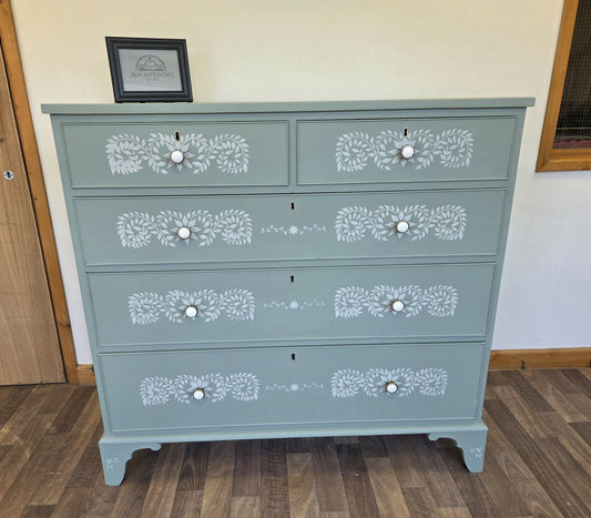 Bone Inlay stencilled large Chest of Drawers