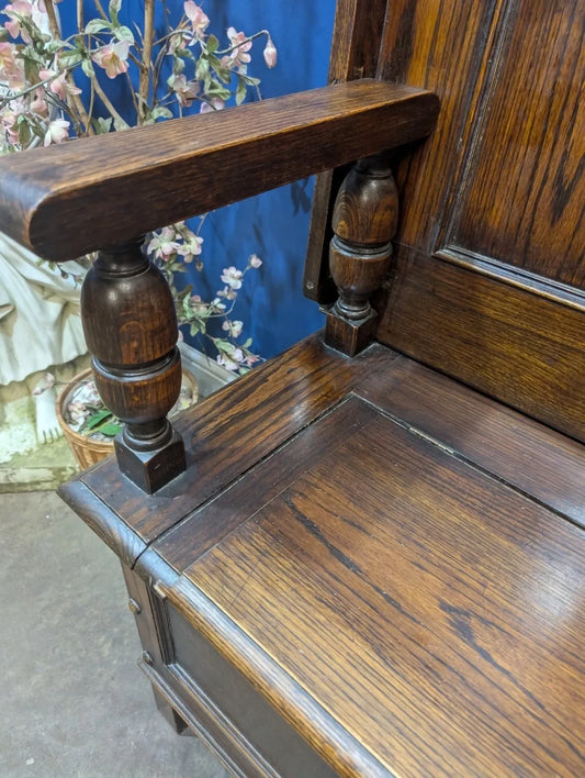 Antique English Oak Monks Bench Storage Seat Table Edwardian