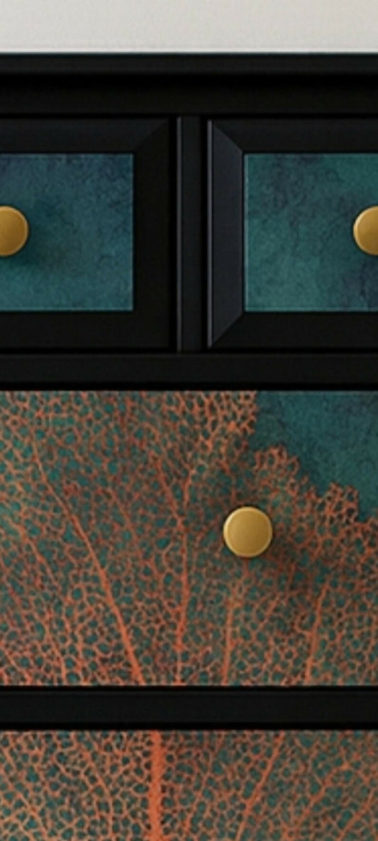 Painted Stag Chest of Drawers Black Teal and Pink Coral. Custom Commission