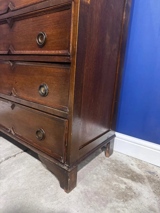 Vintage Oak Tallboy Chest Of Drawers Art Deco Antique Bedroom Wood Cottage