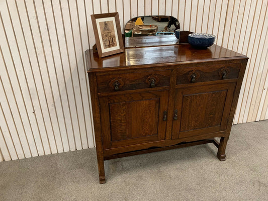 Edwardian Two Door Oak Mirror Back Sideboard in Good Condition.