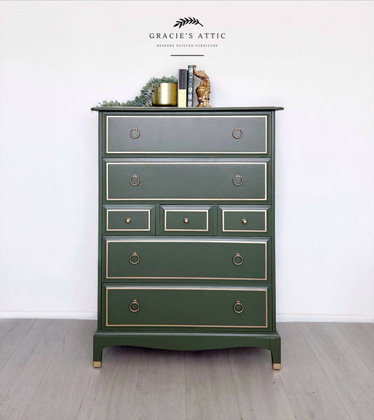 Stag Minstrel Tallboy, 7 drawer, bespoke upcycle, professionally painted to order, Commission