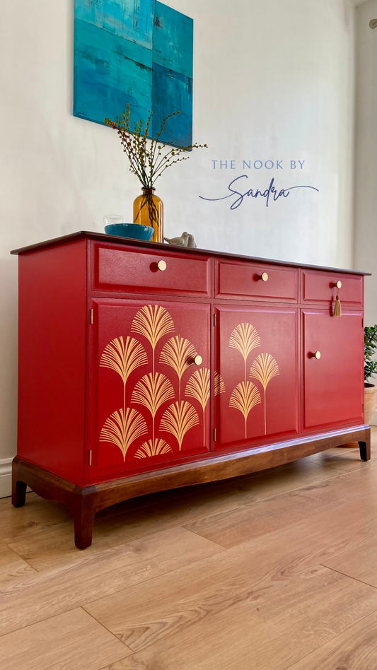 Midcentury Modern Stag Minstrel Sideboard, Red Sideboard