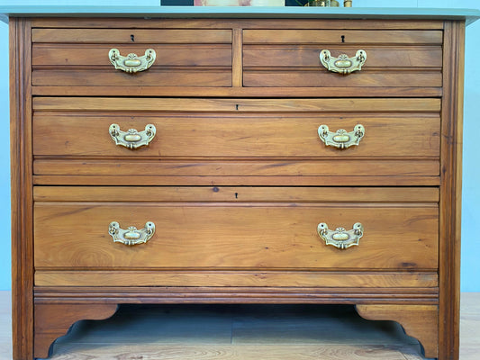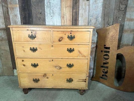 Antique Early Victorian Pine Two over Three Chest of Drawers Dresser, c 1840