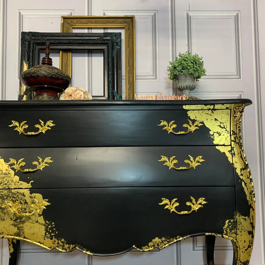 Painted Bombay Chest Of Drawers Black and Gold Sideboard