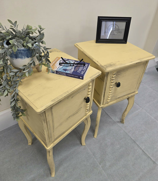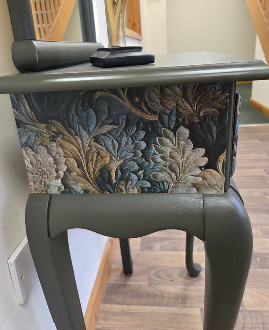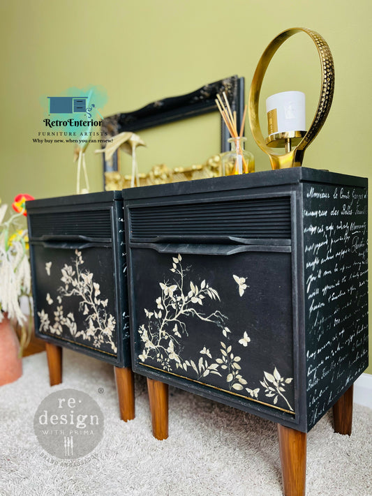 Black and Dark Walnut Vintage Bedside cabinets with Floral Butterfly Front